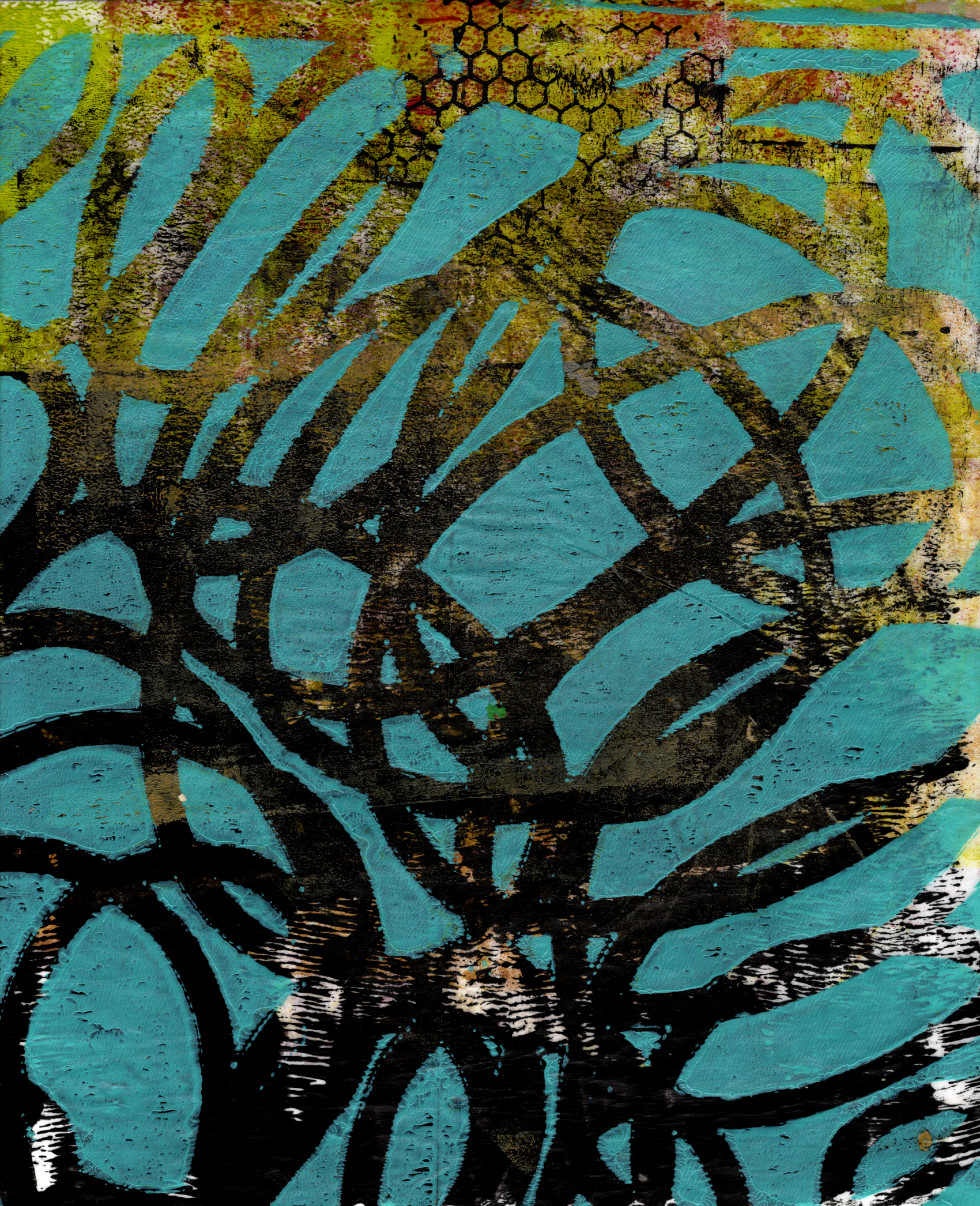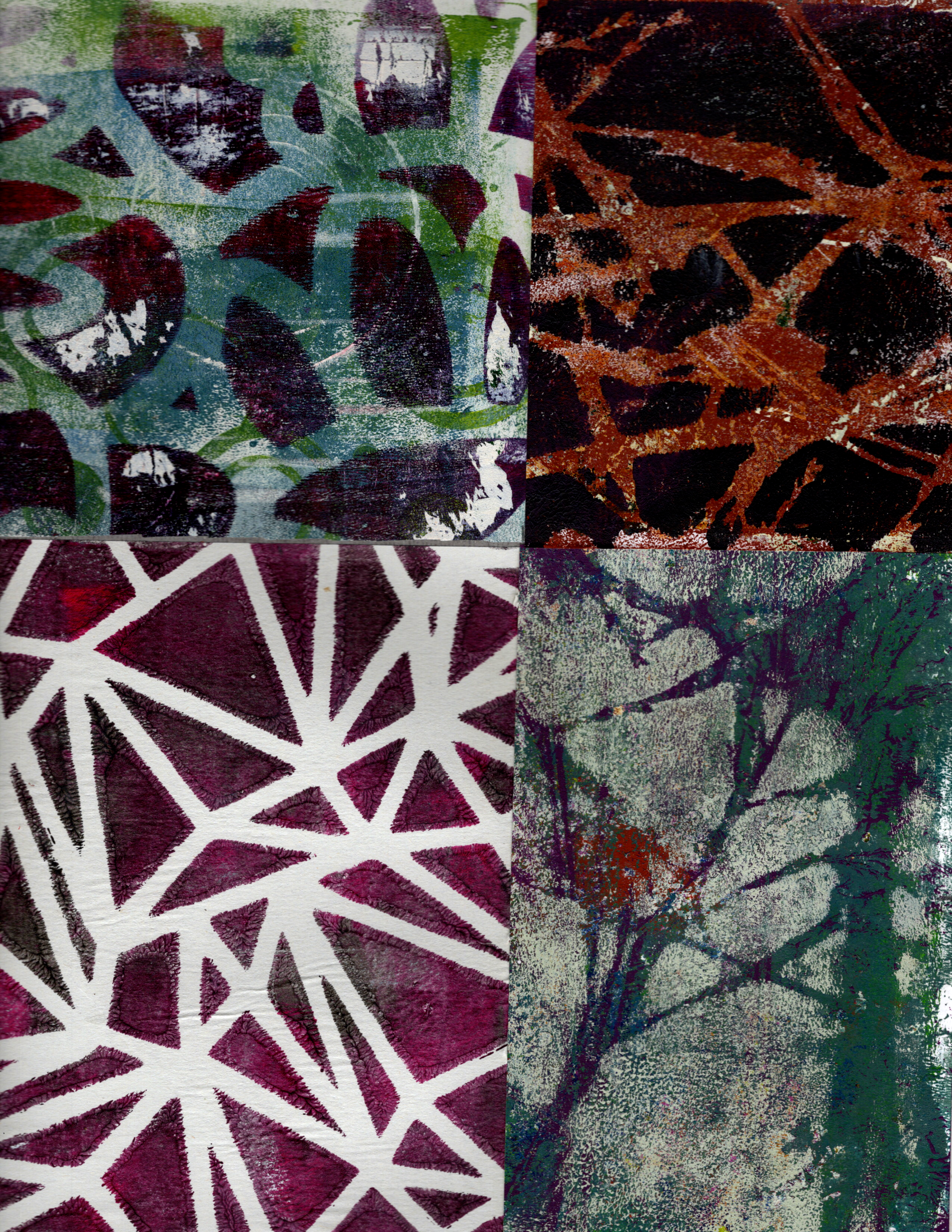 This four day class is for the beginning gel plant printer as well as the more experienced. We will be covering not only the basics, but also all those fun, experimental, and mixed media approaches. We will use stencils, found tools, and a variety of media. We will make monoprints, reverse painting, image transfer and even collage on the gel plate. We will be creating not only lovely papers, but also finished artworks.